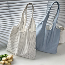 레트로 폴카 도트 모든 매치 캐주얼 토트 백 대용량 숄더 백 대학생 클래스 캔버스 백