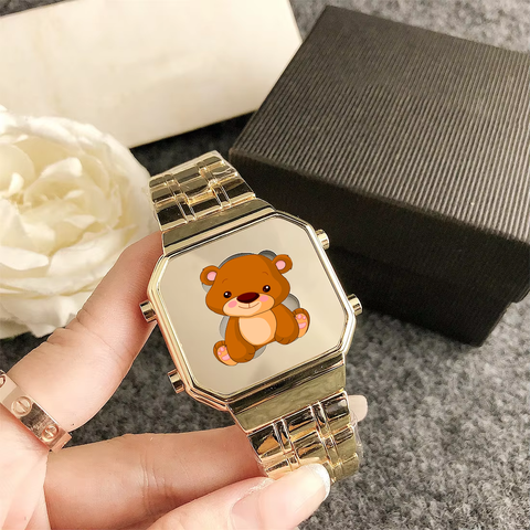 Thời trang touces đơn giản sinh viên mô hình gấu đồng hồ vuông không thấm nước giản dị phụ nữ thạch anh đồng hồ sang trọng